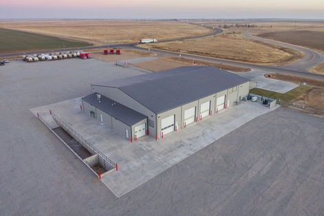 This project showcases different variations of large industrial buildings, including multiple garage doors, an American flag outside, and a vast, open landscape.